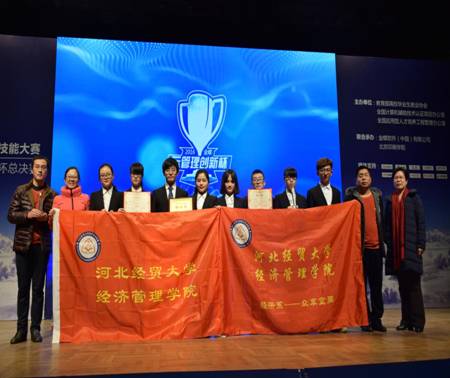 2016年11月25日至27日由教育部高校毕业生就业协会、全国计算机辅助技术认证项目办公室、全国应用型人才培养工程管理办公室主办,金蝶软件(中国)有限公司、北京印刷学院联合承办的全国应用型人才综合技能大赛-2016金蝶云管理创新杯全国总决赛圆满闭幕,由我院经济系派出的“众筹经济”和“众行经济”两支代表队参加了比赛,“众筹经济”团队荣获本次大赛60支代表队总分第一名(铂金奖),“众行经济”团队荣获大赛银奖,王琪老师荣获杰出指导教师奖,与此同时,“众筹经济”四名队员收到了金蝶软件(中国)有限公司人力资源总监发出的工作邀请函,并现场接受了中国教育电视台的专访。 本次大赛是根据《国家中长期教育改革和发展规划纲要(2010-2020年)》等相关政策的要求,以培养符合市场需求的应用型、复合型、创新性的专业人才为主题,大赛从10月份开始全国范围内的预赛、区域赛直到11月的总决赛三轮竞赛环节比拼,参赛老师和同学们一直在全力以赴,披荆斩棘,越战越勇,最终站到了全国第一名的领奖台上。通过本次比赛,提高了参赛学生的学习主动性和积极性,增强了团队协作的能力,有利于学生将所学的课堂理论快速地应用于比赛中去,加强了学生们对财务管理、市场及产品特点的分析能力,让学生们充分理解了企业综合运维和业务管理流程,通过竞赛的演示与答辩也训练了学生们的书面、口头表达及解说能力。 这也是我院首次参加该类比赛,对我院的应用型人才培养方面起到了极好的促进作用,更是对学院的创新创业、教学培训以及校企合作提供了丰富的学习经验。