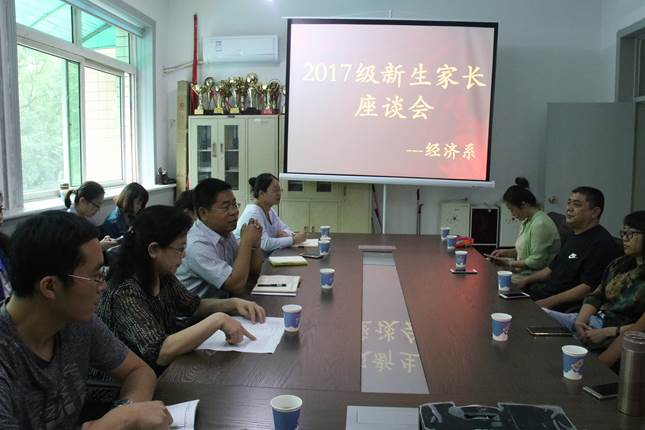 会议伊始,郑学栋代表经济系对2017级新生家长的到来表示热烈的欢迎。并简要介绍了建校历史及经济系近年来的发展历程和取得的成绩。会上,郑学栋就学院师资力量、科研条件、硬件设施、生活条件等做以介绍。期望学生家庭与院系形成教育合力,提升学生们的学习、思辨等综合能力,为将来步入社会打好基础。随后,张玲芝就学院的专业设置、人才培养目标、学生专业发展等方面情况向家长进行了具体介绍;鼓励学生自立自强,主动规划未来,努力追求实现自己的目标。会议互动环节中,家长积极提问,我系领导和老师一一耐心答复,予以满意的答案。 本次座谈会构建了新生家长深入了解学院的桥梁,同时也成为展现我系多方面风采的窗口。通过多方面的互动,2017级新生势必将更快更好地融入大学生活,实现自己美好的大学梦想。