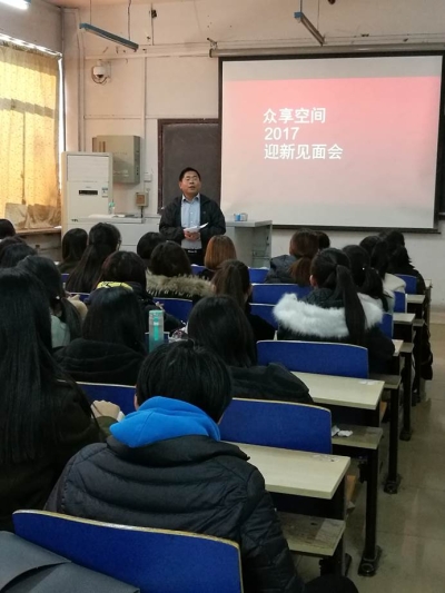 11月22日中午,众“享”空间在二教205室召开了迎新见面会。会议由经济系王琪老师主持,经济系书记郑学栋、辅导员张皓力、郑庆国、贾红玉、赵丽云、韩璐、葛文老师和报名众“享”空间的150多名学生参加了本次活动。